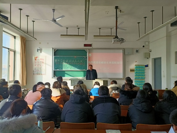 岳峰处长首先介绍了我校能够承办教师资格证面试的原因,肯定了全体师生为通过二级认证所做出的努力。接着,岳峰处长介绍了面试考试的流程及考试技巧,特别指出面试是对平时知识积累的考研,并从具体细节对教师资格考试面试进行了深度解读。最后,李传武院长进行补充,他强调面试考试中要突出重点,突破难点,努力获得更高的面试分数。