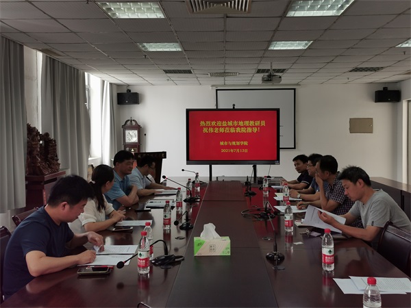 7月13日上午,我院邀请盐城市教科院地理教研员祝伟、盐城师范学院教务处副处长王亮,在城资楼A410会议室共同开展以“校地协同、互促共进”为主题的暑期教研活动,城市与规划学院院长李传武、副院长张华兵、地理科学系主任刘玉卿、海洋资源开发技术系主任张云峰、测绘工程系主任邹丽丽及部分骨干教师参加了研讨会。