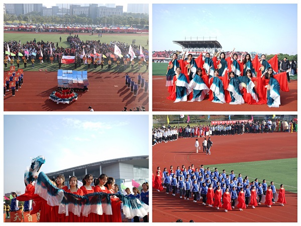在10月21日上午举行的运动会开幕式上,由我院60名学生和37名教师组成的方阵,身穿运动服,精神抖擞、士气高昂地走过主席台接受检阅。“文知天地、武进百里,经天纬地、逐梦扬威”口号响亮、整齐划一;14位舞者伴随着《万疆》用蓝白绸缎汇成“海洋波浪”,山川和城市在同学们的手中进行转换,展示了地理演化变迁和城市规划建设。
