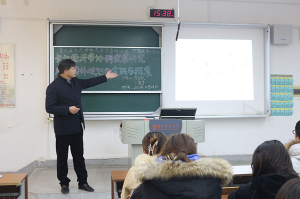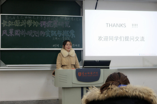 学院院长李传武教授为人文地理与城乡规划专业学生作“长江经济带协调发展研究”专题报告。李传武向同学们介绍了长江的地理位置以及它的经济区的水平、条件、层次、发展等,着重讲述了“交通对于经济方面的重要作用”“交通的发展如何带动经济的发展”等内容,并为同学们答疑解惑。丁宬宇在“风景园林规划的实践与探索”报告中,结合曾完成的规划方案向同学们介绍了快题设计的有效方法、经验和专业绘图软件。两位老师鼓励同学们大胆提出疑惑并且积极思考,在专业上永葆一颗孜孜不倦的心。