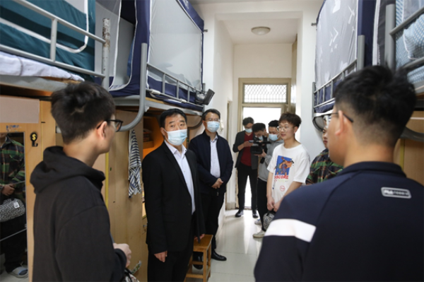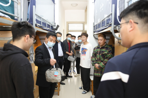 走访期间,戴斌荣一行与同学们进行亲切交流,详细了解每位学生的思想动态、线上学习和生活状况,叮嘱同学们要严格遵守学校疫情防控各项管理规定,勤洗手、常通风、多锻炼,保持良好的作息习惯,创造温馨的宿舍小家;抓好线上课程,学好专业知识,做好人生规划,提升个人价值。