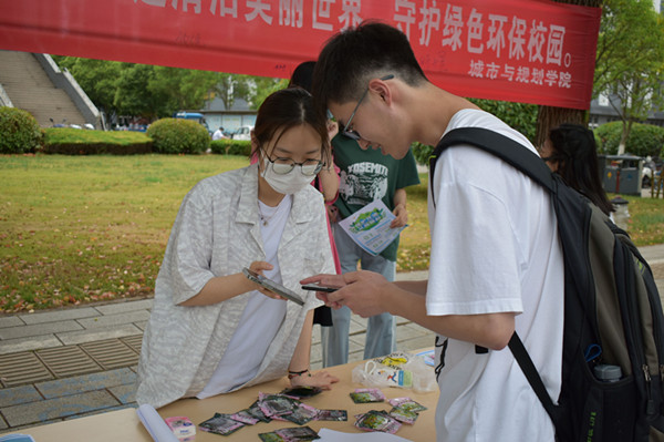 在沁园食堂广场前,水文化协会志愿者通过分发环境保护宣传单页、环保知识有奖问答、讲解领养绿植种子流程等形式发出低碳节能环保的倡议,同学们积极参与环保知识有奖问答、转发学院“世界环境日”微信公众号推文,在宣传横幅上签名,留下环保宣言,希望用自己的行动为宣传环保理念、守护美丽中国尽一份责,出一份力。地科202班夏清同学表示:“小种子成就大梦想,低碳环保的大学生生活,从一颗传播爱与生命的绿植种子开始。作为新时代大学生,我们要积极传播“爱地球”的理念,自觉从我做起、从小事做起、尊重自然,我们的地球母亲,会绿意盎然,越来越好!”