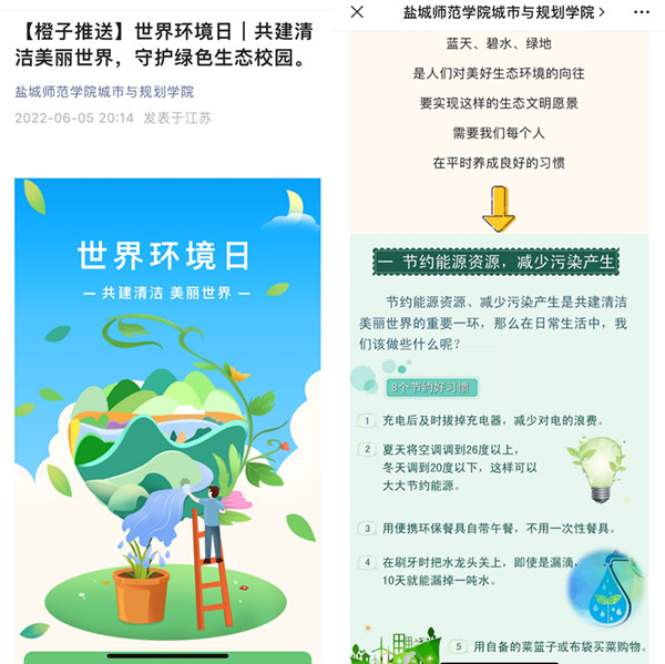 在世界环境日期间,学院青年学生深入学习习近平总书记致2022年六五环境日国家主场活动的贺信精神,进一步参与生态文明建设,弘扬生态文化,培育生态道德,增强环境保护意识,践行绿色低碳生活,树立绿色消费观念,争做生态文明理念的积极传播者和模范践行者。