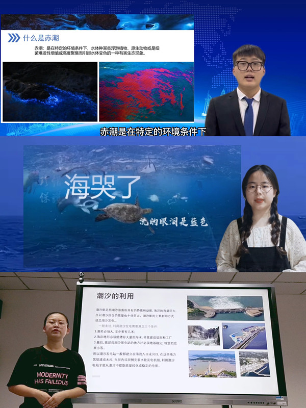 学院线上线下同步开展“听我说大海”科普知识讲解大赛集中展示,通过讲述《海洋杀手:赤潮》《海洋中的人造杀手:微塑料》《海的蓝眼泪》等海的故事,推广普及海洋专业知识,增强海洋环境保护意识,提升海洋科学文化素养。