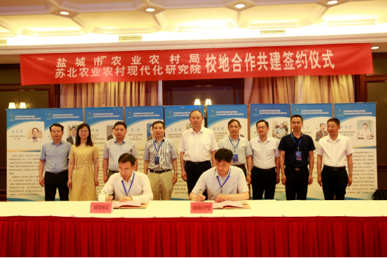 6月18日下午,苏北农业农村现代化研究院(以下简称“研究院”)与盐城市农业农村局校地合作共建研讨会暨项目合作签字仪式在江苏省盐城市水城度假酒店峰会厅隆重召开。