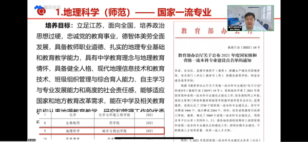 宣讲中,李传武从学院简介、专业特色、人才培养、社会服务、文化传承和竞赛风采等六个方面进行详尽的介绍和解读,真正的做到了让更多考生及家长面对面的深度了解学院。李传武从地理学角度深度分析盐城的地理位置优势和地域特色,从师资队伍、教学条件角度出发,充分展现了我院强大的教学基础、丰厚的学术成果和综合的办学实力;详细介绍了学院国家一流本科专业建设点地理科学(师范)专业、江苏省一流本科专业建设点和国家战略需求专业测绘工程专业的内涵与实力,全面展示了各专业的特色与优势;结合大数据、优秀学生典型等方面生动介绍了学院学生参加国家级、省部级学科竞赛的丰硕成果和积极投身社会实践,服务社会发展的广阔影响力。