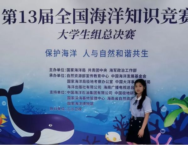 本次大赛以“保护海洋,人与自然和谐共生”为主题,自2021年6月8日启动以来,全国1080所高校的大学生通过个人网上答题、高校选拔、地区选拔等方式进行层层选拔,共有来自20个省区市的60名大学生入围全国决赛,我院地理科学专业19(1)班栾爽同学和海洋资源开发技术专业19(6)班李丹成功入围,李丹同学更是在60进10的比赛中成功晋级,与来自南京大学、中国海洋大学和中国地质大学(北京)等高校选手同台竞技。