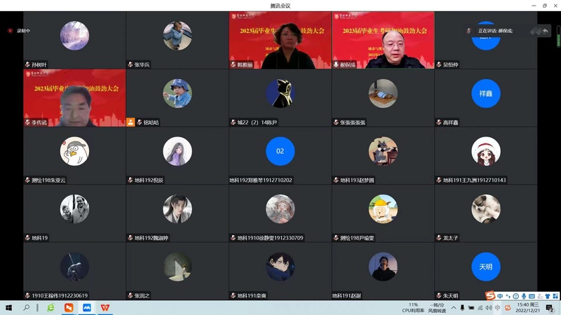 在考研临近之际,为进一步提振学院考研学生士气,助力考研学生再创佳绩,12月21日下午,我院在腾讯会议线上举行2023届毕业生考研加油鼓劲大会。校党委常委、纪委书记、省监委派驻监察专员韩雅丽,学院领导、系主任、辅导员、毕业班班主任出席会议,为全体考研学子加油打气。学院百余名考研学子参加大会。会议由学院党委书记郝保成主持。