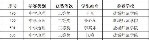 第十一届江苏省师范生教学基本功大赛(中学理科组)于2023年3月3日-5日在南通大学举行。通过激烈的角逐,我院2019级地理科学专业王凡、朱心蕊同学喜获二等奖,张艳、李其乐同学获三等奖。
