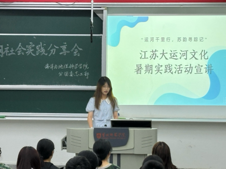 为助力乡村振兴,引导青年学子在基层实践中厚植家国情怀、锤炼过硬本领,近日,学院举行暑期社会实践活动分享会,结合2025年“推普助力乡村振兴”全国大学生暑期等社会实践志愿服务活动,展示了多支团队围绕江苏大运河文化、普通话推广与家乡自然地理调查所开展的丰富实践活动成果。