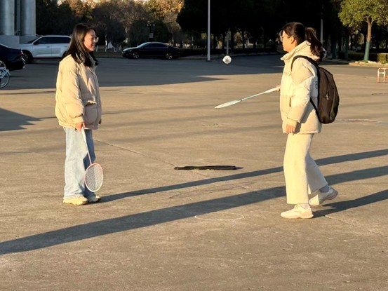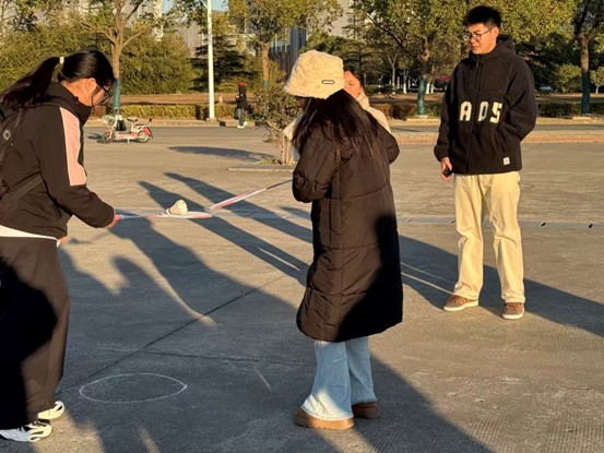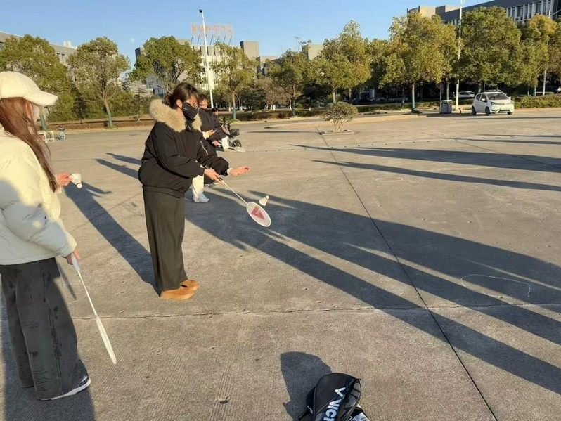 本次活动共吸引近四十名羽毛球爱好者参与,活动以“趣味接力赛+颠球打击赛”为主,全程以耗时长短来定胜负。活动过程中,各小组选手分工明确,有人专注稳定递球,让羽毛球稳稳停在球拍上;有人提速绕圈,抓住机会冲刺;有人屏气凝神颠球,聚精会神。现场选手们有因为失误引发的小紧张,让观赛者也跟着屏气凝神;也有选手成功击球后爆发出激动的欢呼,大家都沉浸在比赛带来的乐趣当中。全场节奏紧凑但氛围轻松。城25(2)地理S班的智奕同学表示:“活动氛围十分和谐有趣,同学们也十分团结,大家真切地体会到了羽毛球运动带来的欢乐。”