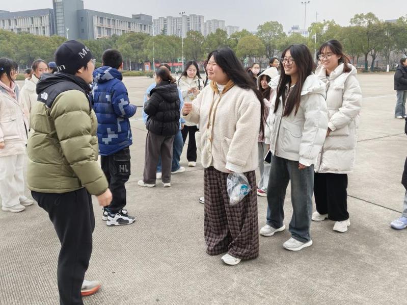 本场活动设置“单词接力跑”“你画我猜”两个趣味环节,将英语学习与体育运动巧妙融合,在化解学习枯燥感的同时,调动同学们室外锻炼的热情,有助于舒缓期末备考的精神压力。在单词接力跑环节,大家凝神聚力,默契配合,既考验着专注力与知识储备,更彰显了团队协作的强大力量。“你画我猜”环节同样热闹非凡,参与者们脑洞大开、生动演绎,夸张的肢体表达与巧妙的词语联想引发在场观众阵阵欢笑,晦涩的英文词汇通过趣味表达被快速破译,英语学习的趣味性与体育运动的活力此刻完美交融。海洋255班薛莉嫄在参与后坦言:“平时记背单词总觉得枯燥乏味,今天边运动边记,反而记得又快又牢!”