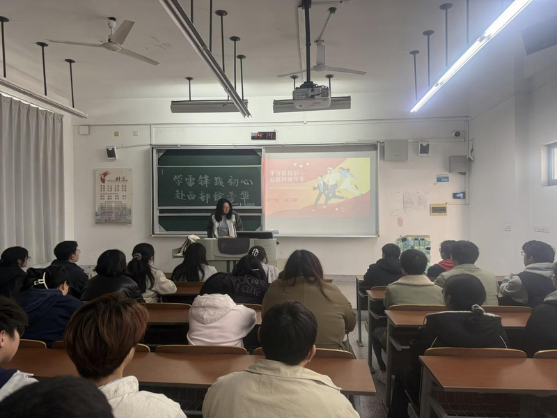活动中,各班团支部深入学习贯彻落实习近平总书记给新疆谢依特小学戍边支教西部计划志愿者服务队全体队员的重要回信精神,深学细悟习近平总书记关于志愿服务的重要论述和重要指示批示精神,激励广大团员和青年在“十五五”新征程中勇担使命、展现作为。活动期间,各班支部组织专题学习会,通过报告解读、专家讲座、小组研讨等形式,组织团员和青年结合2026年西部计划报名通知,系统了解项目专项设置、选拔标准、政策保障及报名流程,引导团员和青年深刻领悟中国式现代化的深刻内涵与重大意义,结合自身学习生活、专业特色与职业规划,开展小组讨论与代表发言,鼓励团员青年分享观影感悟与学习心得,探讨在校园中弘扬雷锋精神、在社会实践中传承红色文化、在专业学习中锤炼过硬本领的具体路径,切实将雷锋精神转化为推动自身发展和国家建设的实际行动。地科251班的廖文轩同学同学表示:作为新时代青年,我们要怀揣着“天下兴亡,匹夫有责”的担当意识,不断努力刻苦提升自己,志存高远,将个人梦想与社会、国家相结合,并不断为之努力奋斗,以行动践行雷锋精神。