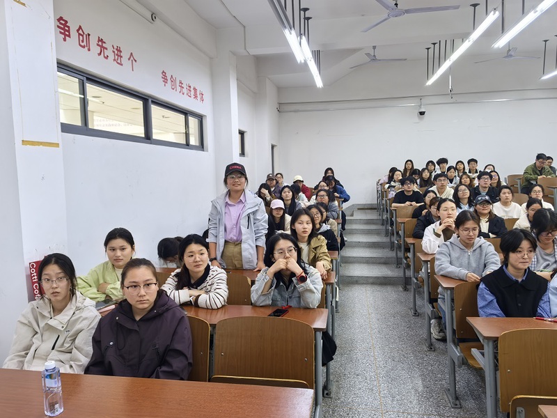 在互动交流环节,现场气氛热烈。颜灵溪耐心解答了同学们关于选调备考、职业规划及心态调整等方面的提问,毫无保留地分享了宝贵经验。本次分享会不仅加强了校友与母校的情感联系,更为在校学子坚定理想信念、勇于突破自我注入了强劲动力。